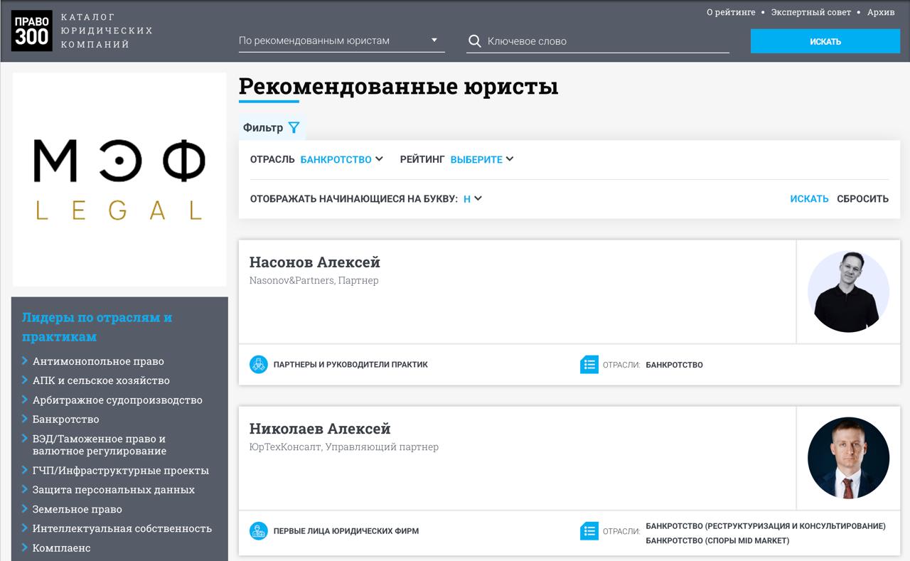Сегодня вышел индивидуальный рейтинг юристов Право-300.