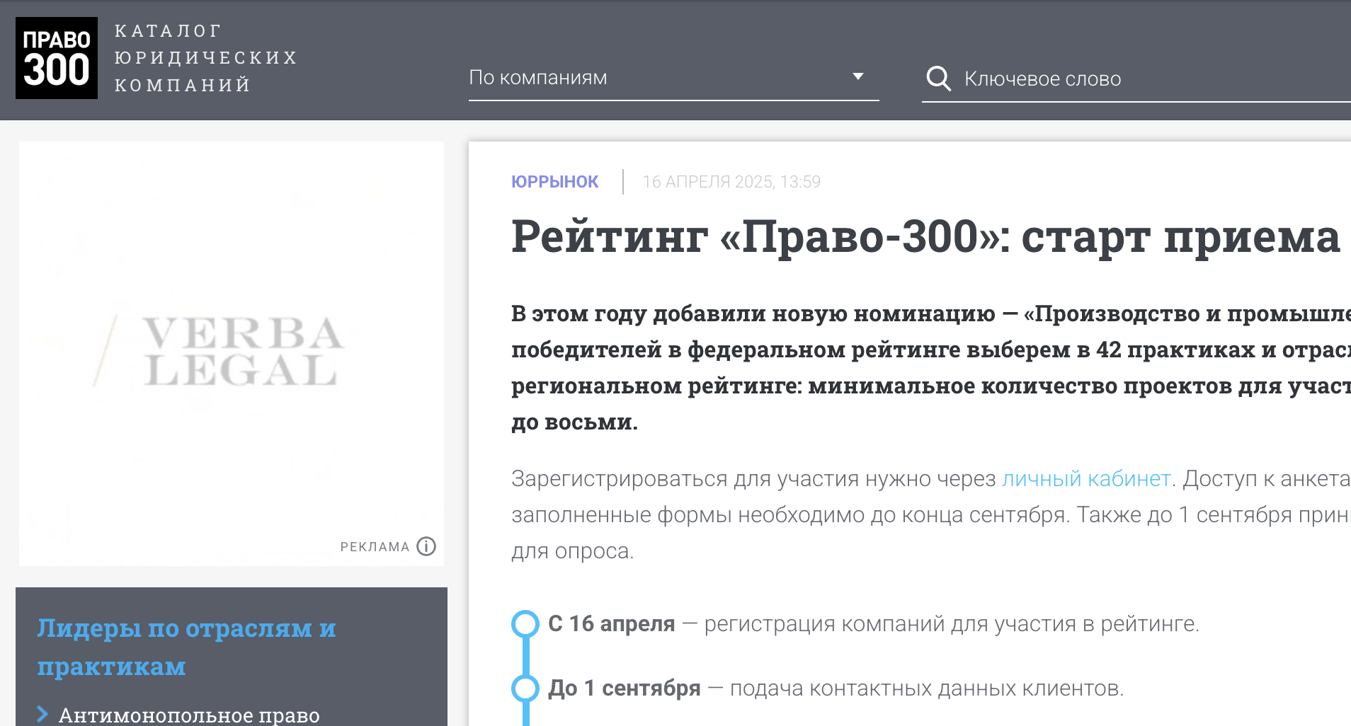 Важные даты- С 16 апреля — регистрация компаний для участия в рейтинге. Для участия в рейтинге необходимо оплатить регистрационный взнос и его сумма зависит от количества практик.